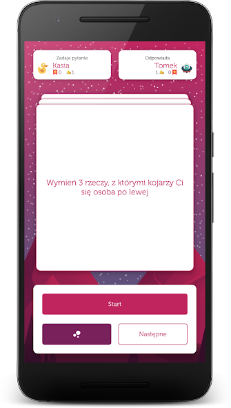 ✔ Игроки задают вопросы друг другу вопросы, представленные в приложении